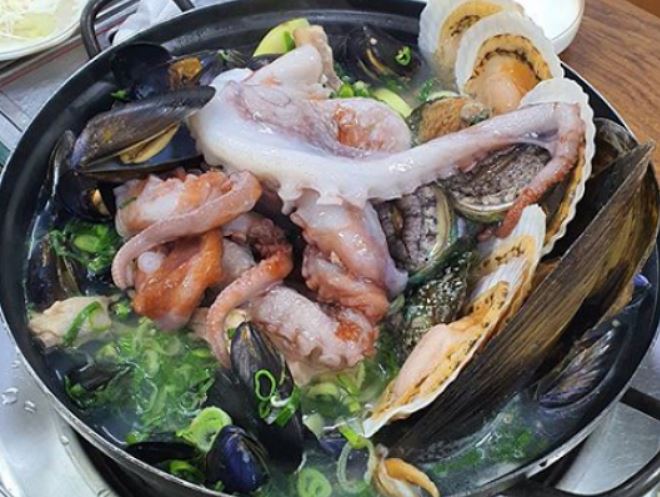 손질한 전복과 새우 바지락 낙지를 넣고 오분에서 십분 정도 살짝 끓여주셔야합니다.
